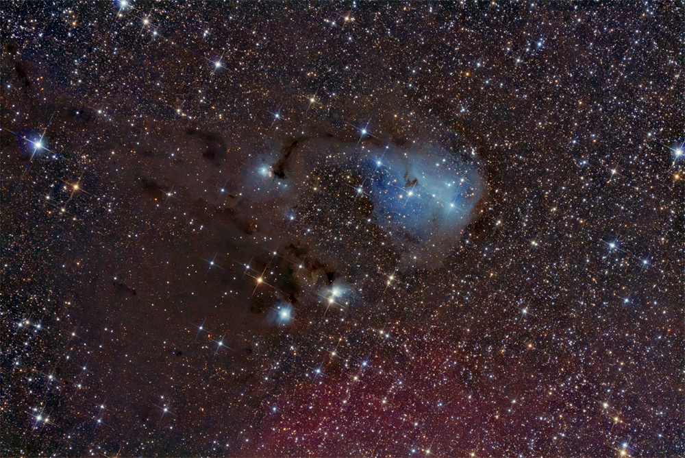 nebulosity (LDN1606 & LDN1607), connects the largest blue area