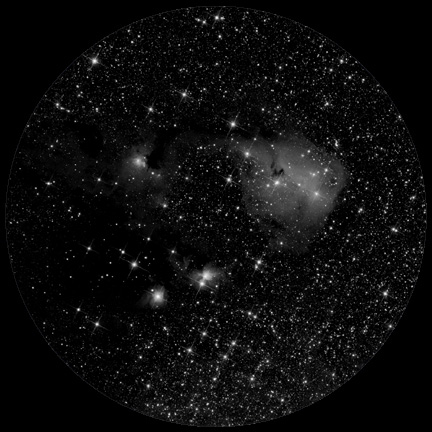 reflection nebula and dark nebula. A curved section of dark