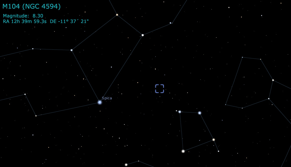 the constellation of Virgo. Its designation is M104. This