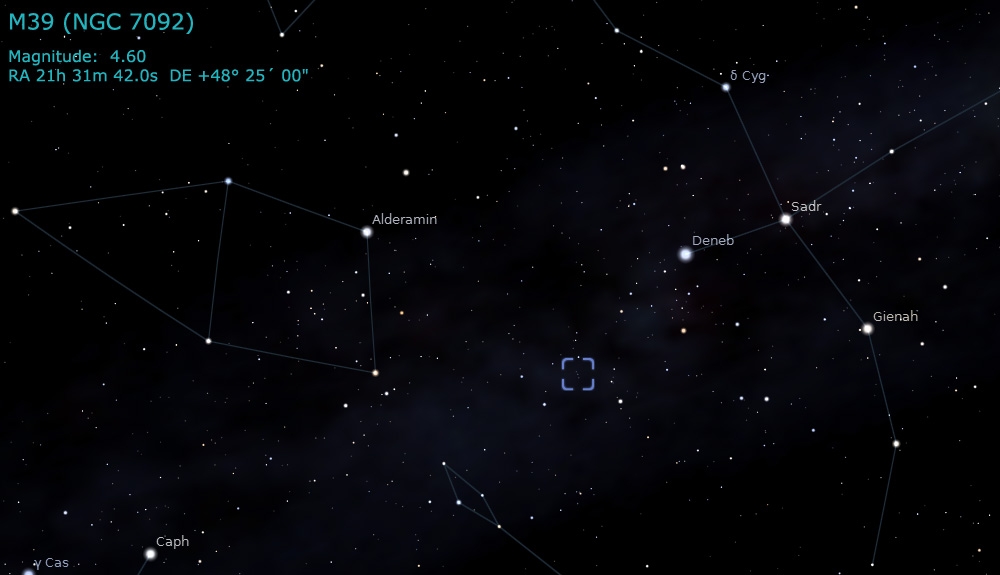 constellation Cygnus, M39 is a very loose cluster of about 30