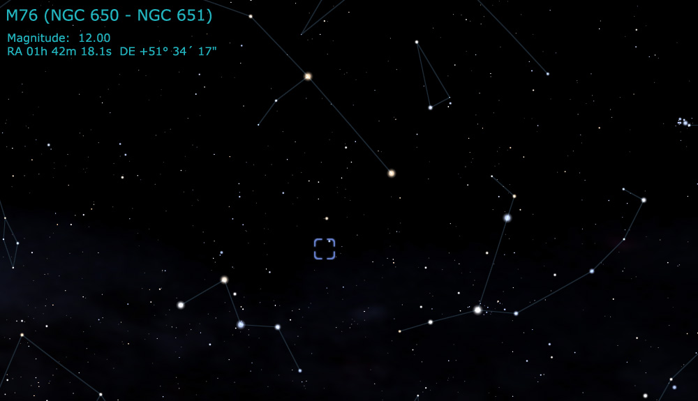 faint planetary nebula known as M76. This nebula is also known