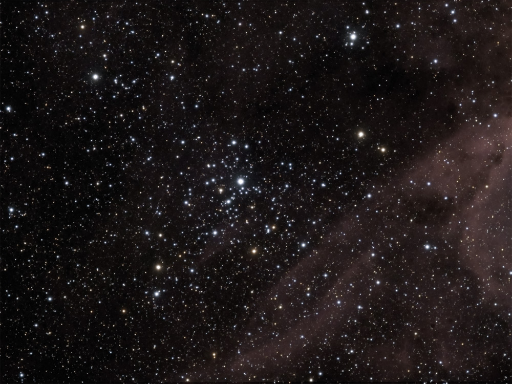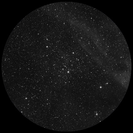 Located in the constellation of Cassiopeia NGC 1027 is visually just outside of the emission nebula know as the "Heart Nebula", but at a distance of 3,300 light years it is about half way between Earth and the nebula.