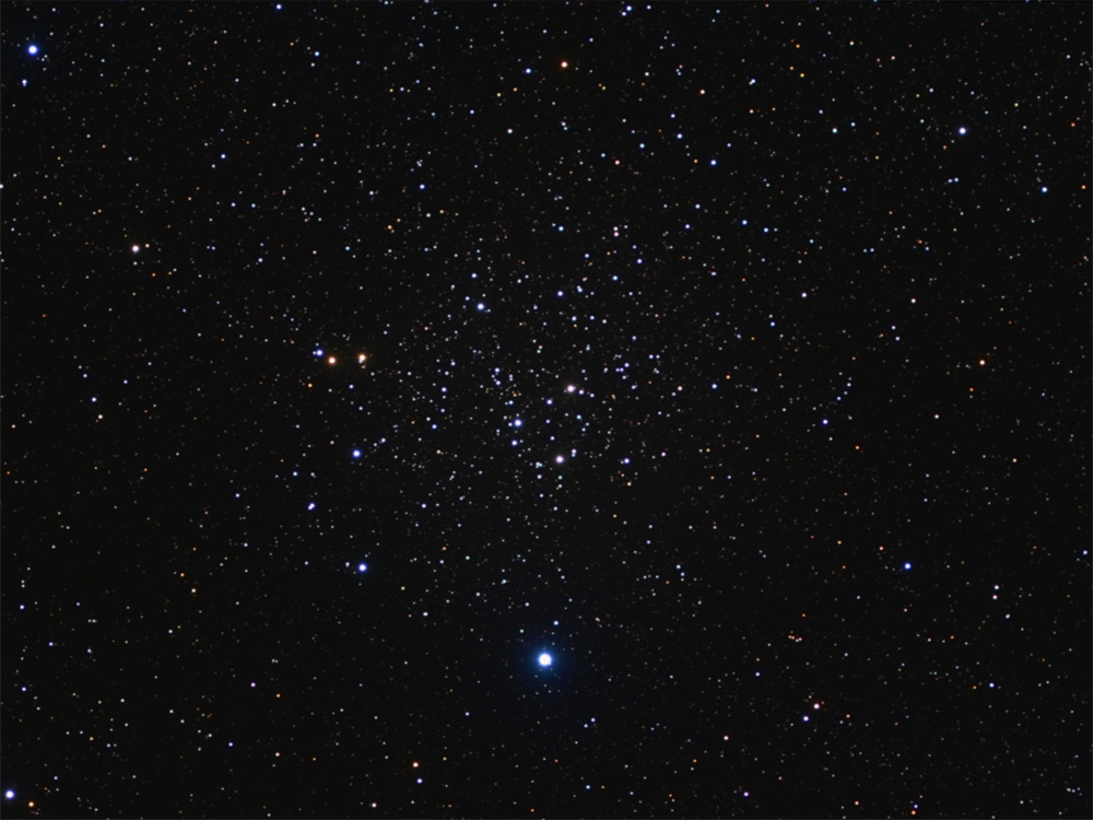 NGC 129 is an open cluster in the constellation of Cassiopeia. It is a small cluster formed by about 35 stars. NGC 129 is about 9,900 light years distant from Earth.