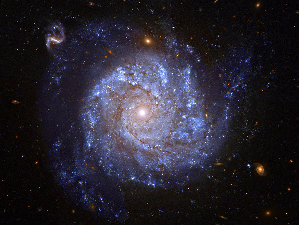 spiral arms, while the yellowish central nucleus contains
