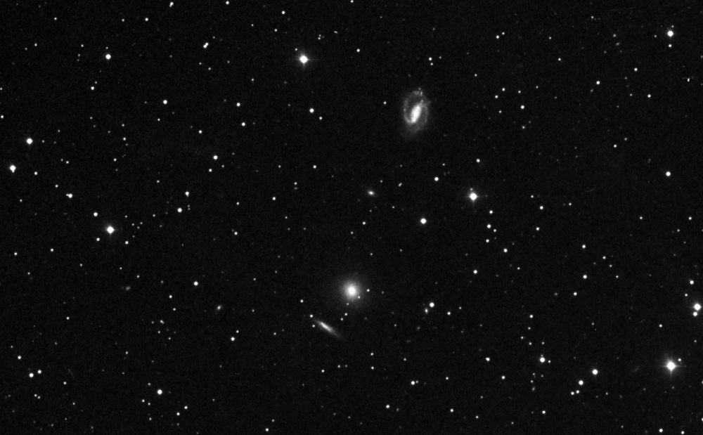 The barred spiral above is ARP 80, the edge on spiral below is NGC 2634A.