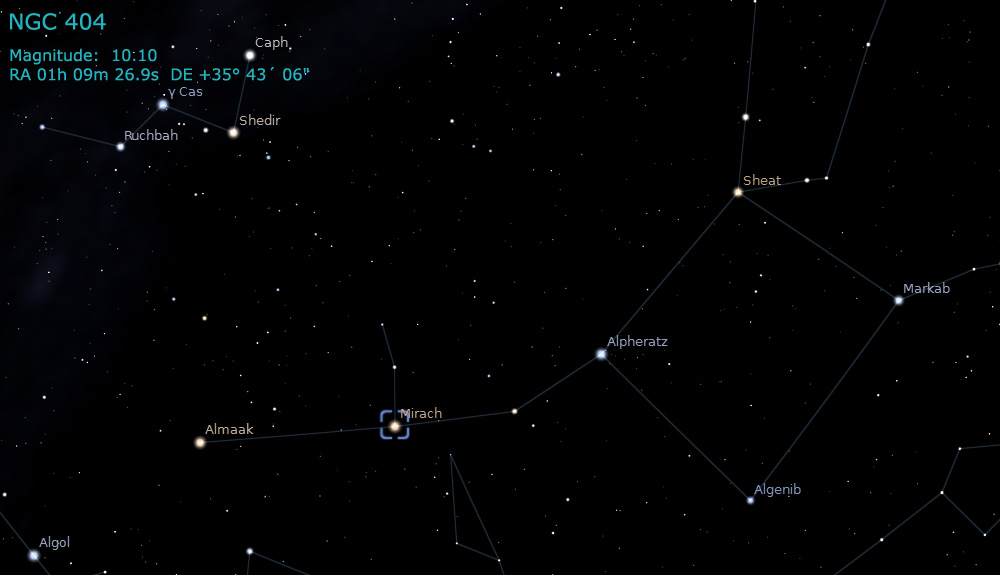 Mirach is only 200 light years away, while NGC 404 lies at 10.3