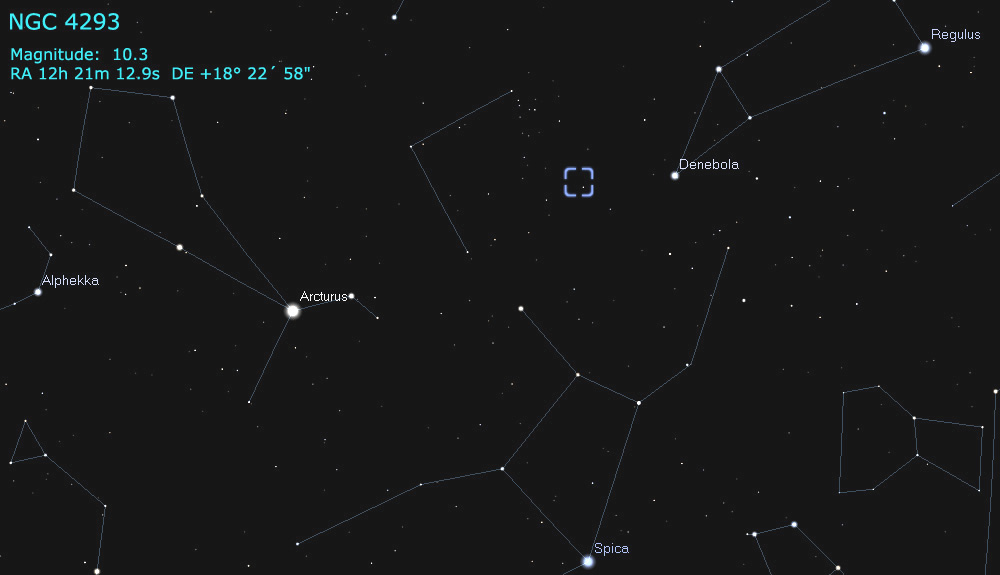 Berenices, NGC 4293 is "faint, very large, extended, little