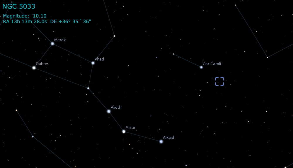 NGC 5033 is an inclined spiral galaxy located