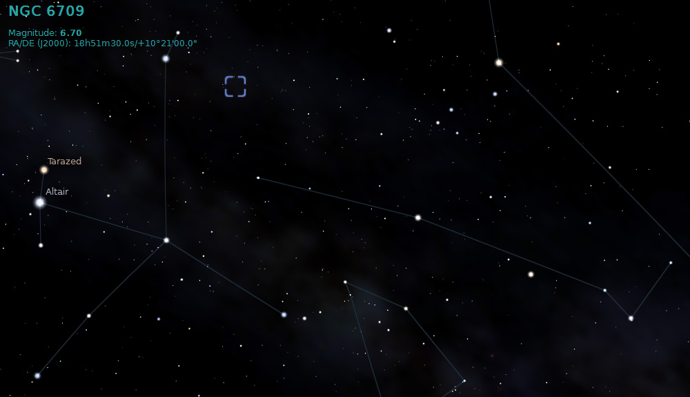 constellation Aquila. NGC 6709 contains about 60 stars and has