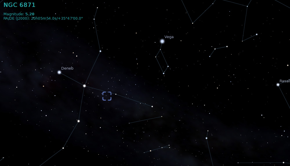 NGC 6871 is an open cluster visible in the