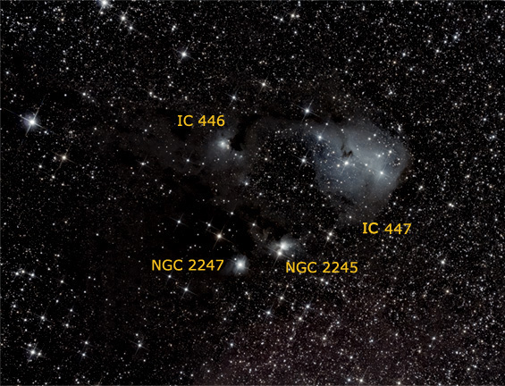 of nebulosity, (IC 447) with the blueish IC 446.