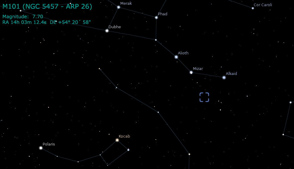 disk galaxies known. M101 is a bright object with a magnitude of