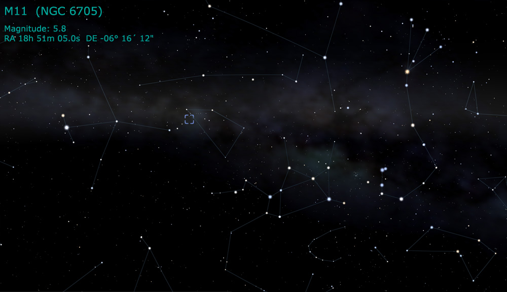 Located in the constellation Scutum, M11 has