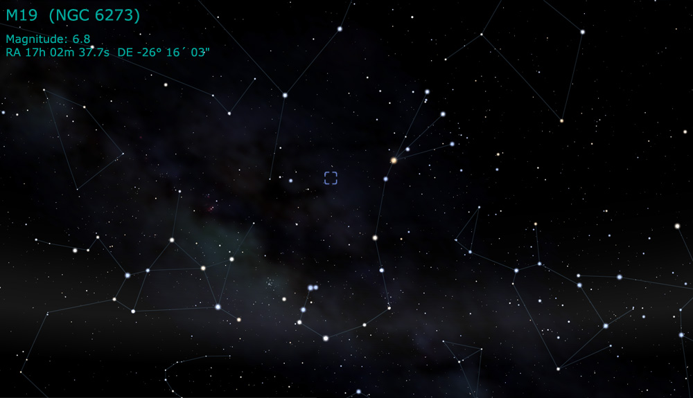 Globular cluster M19 can be found in the
