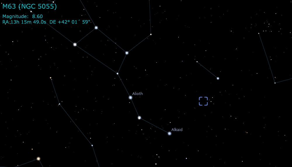 constellation of Canes Venatici is M63, a spiral galaxy also