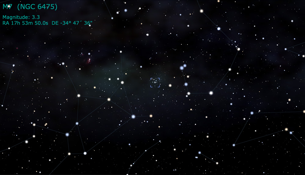 rich hunting grounds of the constellation of Scorpius is M7,