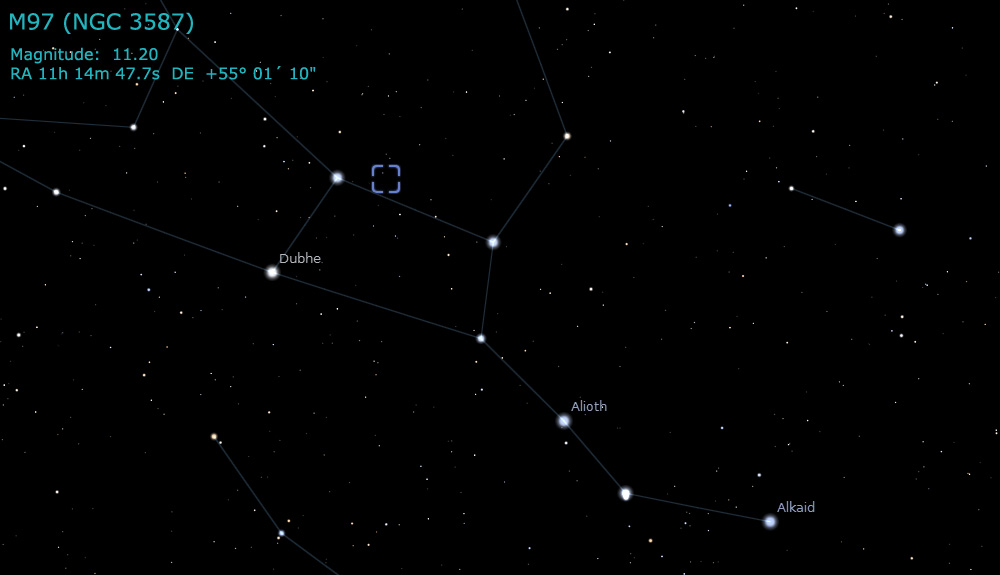 location of the famous Owl Nebula, M97. This planetary nebula