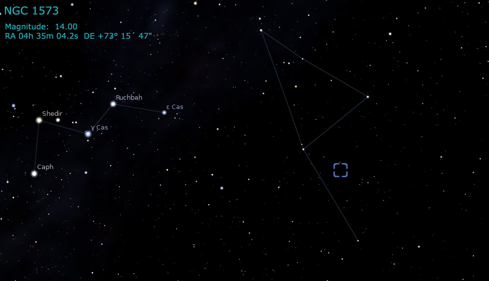 NGC 1573 is an elliptical galaxy which is 188 million light years from earth. It has a diameter of 2000 light years. Visually it is a very small circular shaped object. Its visual magnitude is 11.7.