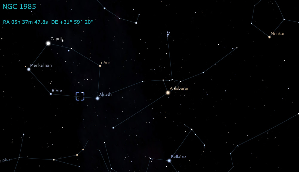 NGC 1985 is a nebula in the constellation of Auriga. It was originally thought to be a planetary nebula, but is now generally accepted as a reflection nebula.