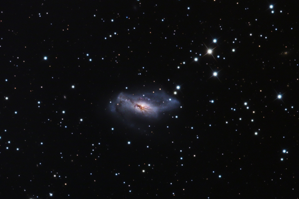 constellation of Camelopardalis. This peculiar galaxy with large