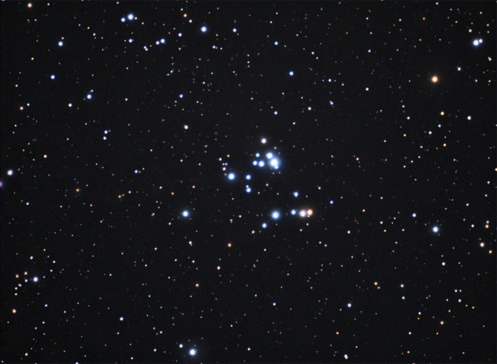 NGC 2169, is an open cluster in the Orion constellation. NGC 2169 is at a distance of about 3,600 light years away from Earth. It is nicknamed "The '37' Cluster" due to its striking resemblance to the numerals "37."