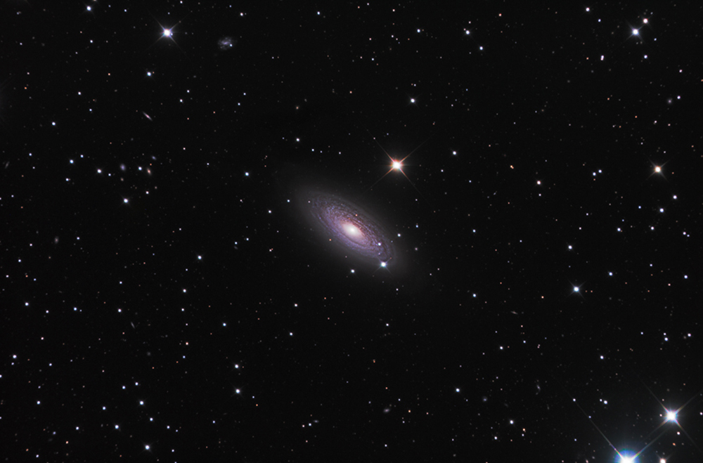 into a halo around NGC 2841. The prominent stars with a spiky