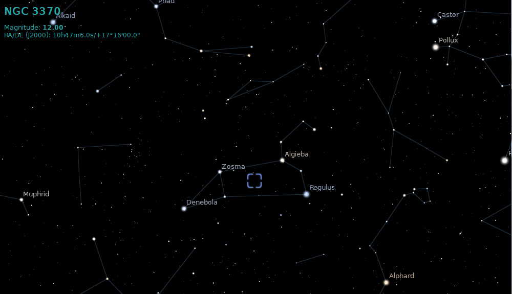 NGC 3370 is a spiral galaxy about 98 million