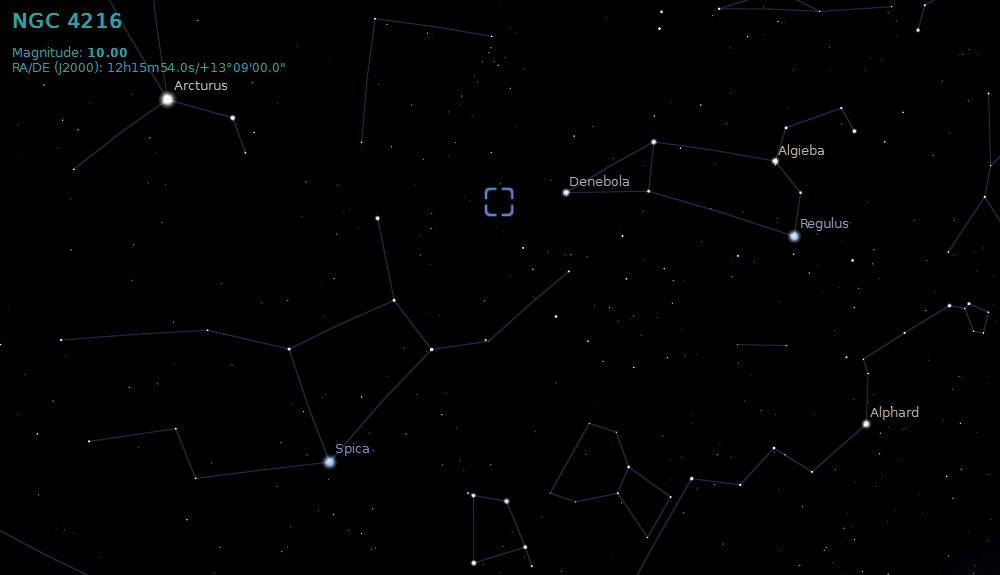 the center is NGC 4216, at a distance of 40 million light-years.