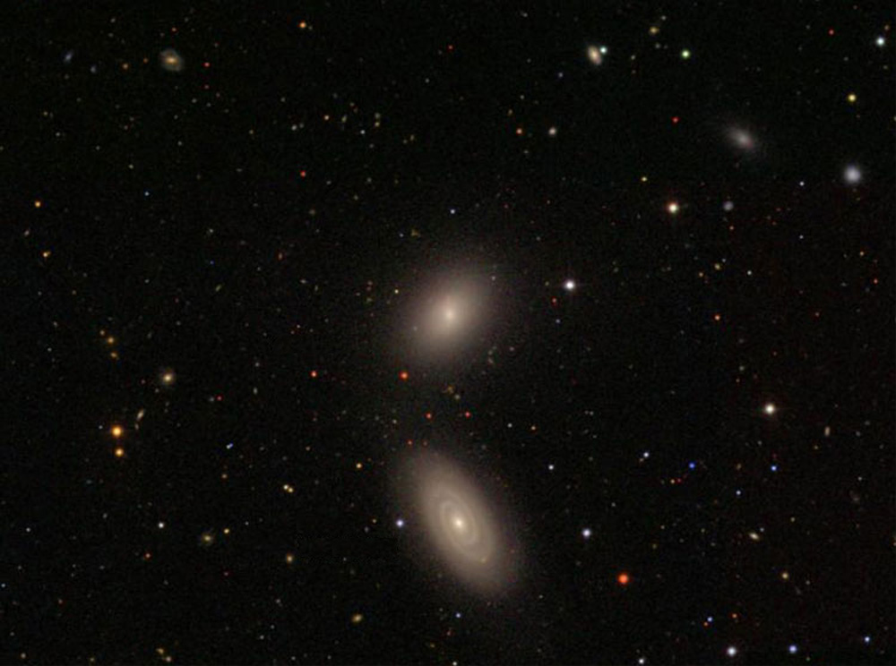 NGC 4305 & NGC 4306 are part of a group of galaxies known as Markarian's Chain, which forms part of the Virgo Cluster. NGC 4306 is on top in this picture.
