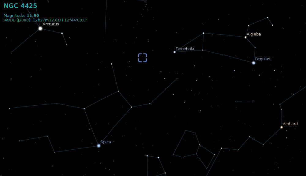 NGC 4425 is an 11.9 magnitude barred spiral galaxy that is part of a group of galaxies known as Markarian's Chain, which forms part of the Virgo Cluster.