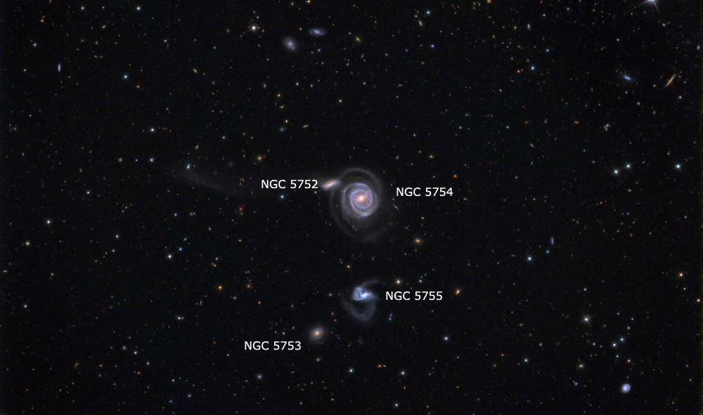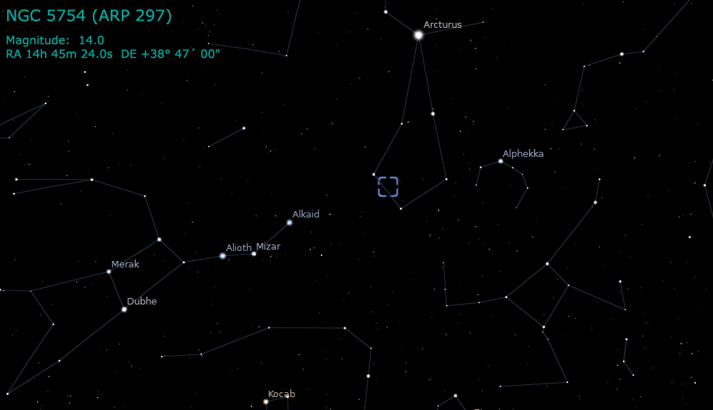 NGC 5754 is a galaxy in the constellation Bootes, member of Arp 297 interacting galaxies group of four: NGC 5752, NGC 5753, NGC 5754, NGC 5755.