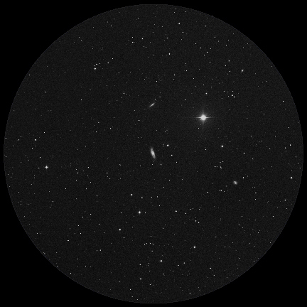 NGC 5899 is a barred spiral galaxy in the constellation Bootes. It forms a pair with NGC 5900, shown here on the left. They both show signs of gravitational interaction. They are seperated by roughly 10 million light years.