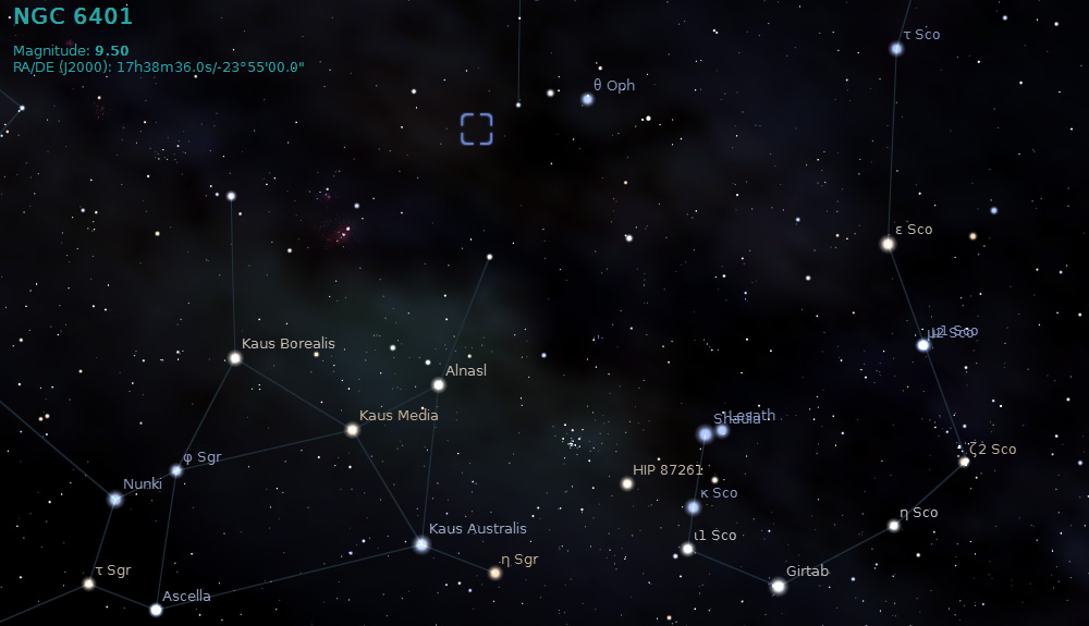 NGC 6401 is a globular cluster in the constellation Ophiuchus. Located approximately 34,600 light-years from Earth.