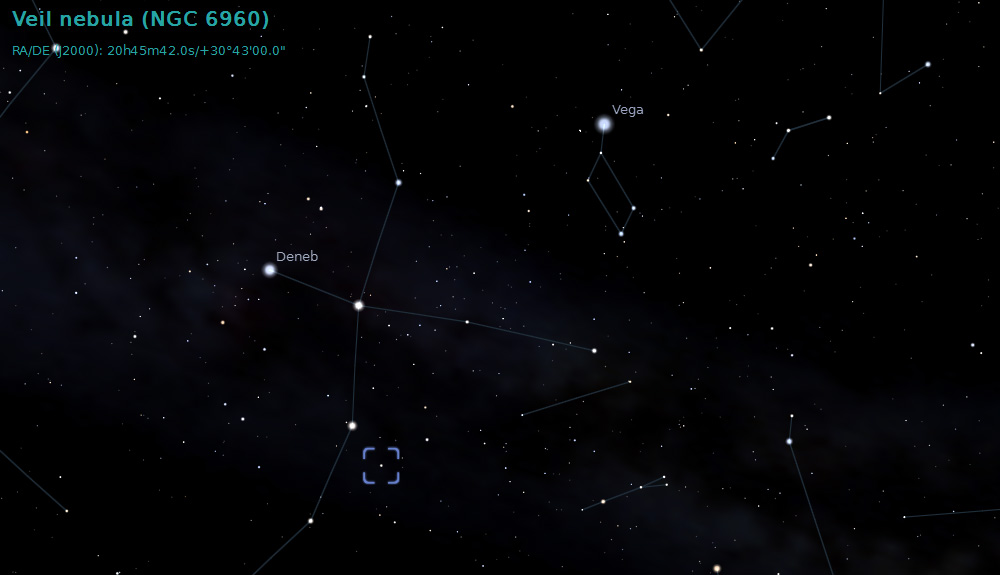 the centre is 52 Cygni. The Veil Nebula takes its name from the